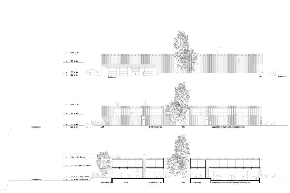 Neubau eines Zentrums für Wassersportvereine und die DLRG – Café, Restaurant und Tagungshaus